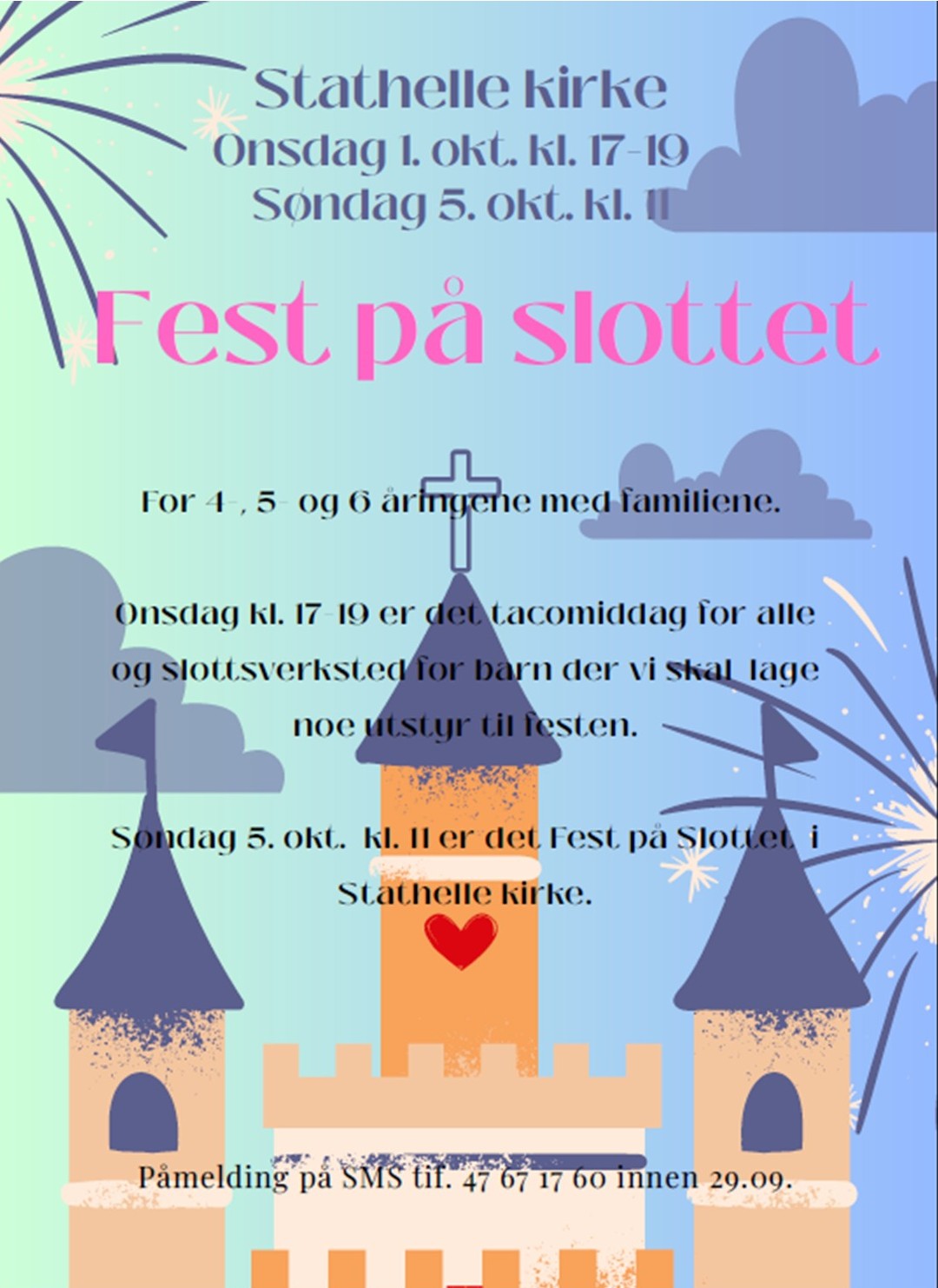 I Forbindelsen med bokutdelingen i kirken inviteres 4, 5 og 6-åringene til Fest på Slottet!