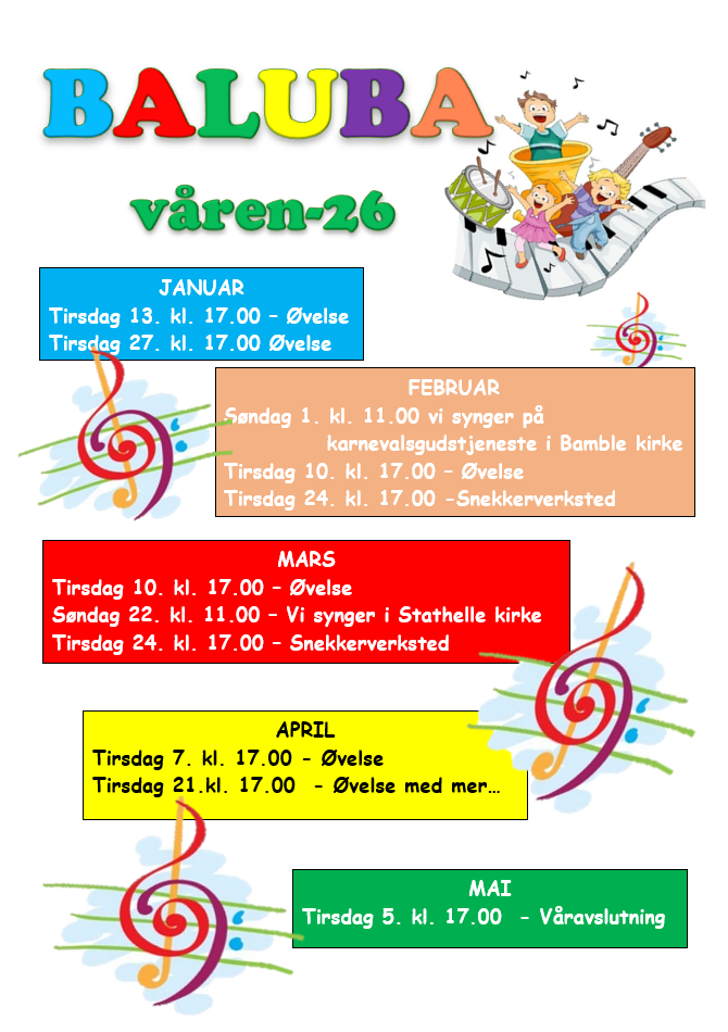 Kom å syng med oss i Barnekoret BALUBA. Vi øver på Bamble menighetshus annenhver tirsdag.